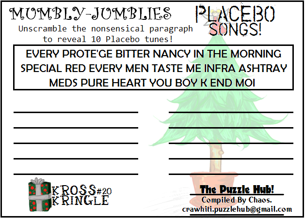 - Chaos: crawhiti.puzzlehub@gmail.com